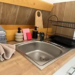Az apartman 120 km-re van a Krakko-Balice nemzetkozi repuloter repülőtértől. A vendégeket pihenésre invitálják a teraszra.